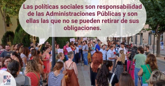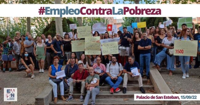 Murcia, 15 de septiembre de 2022. Por tercer jueves consecutivo, la Red de Lucha Contra la Pobreza y la Exclusión Social en la Región de Murcia y sus entidades han convocado una concentración en el Palacio de San Esteban para exigir la continuidad en los programas de empleabilidad. Esta ha sido la concentración más numerosa…
