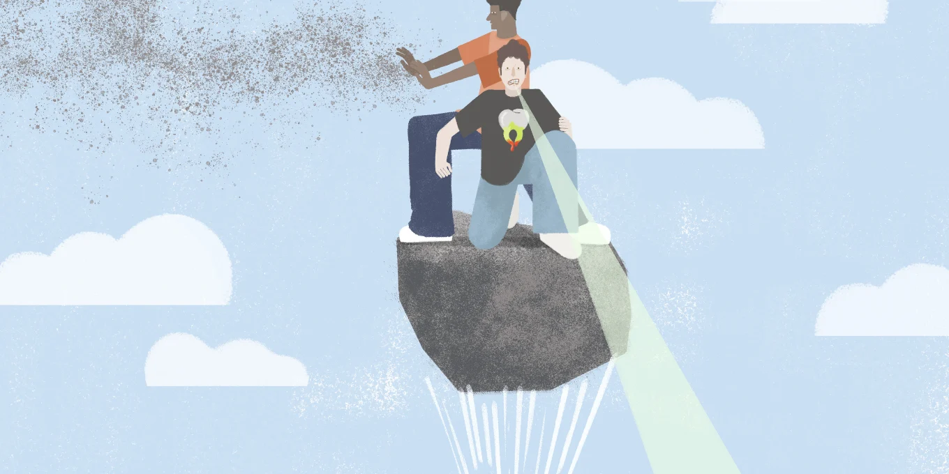 La arena del desierto fue roca antes de ser arena. Capitán Duna ha prestado atención en la clase de Ciencias Naturales y ha aprendido a usar sus poderes para manipular y mover arena, piedras y toda clase de rocas. Gracias a eso, una roca inmensa sobrevuela el Canal de la Mancha rumbo a Portland. Sobre ella, Capitán Duna y Chico Caries repasan el plan por última vez.