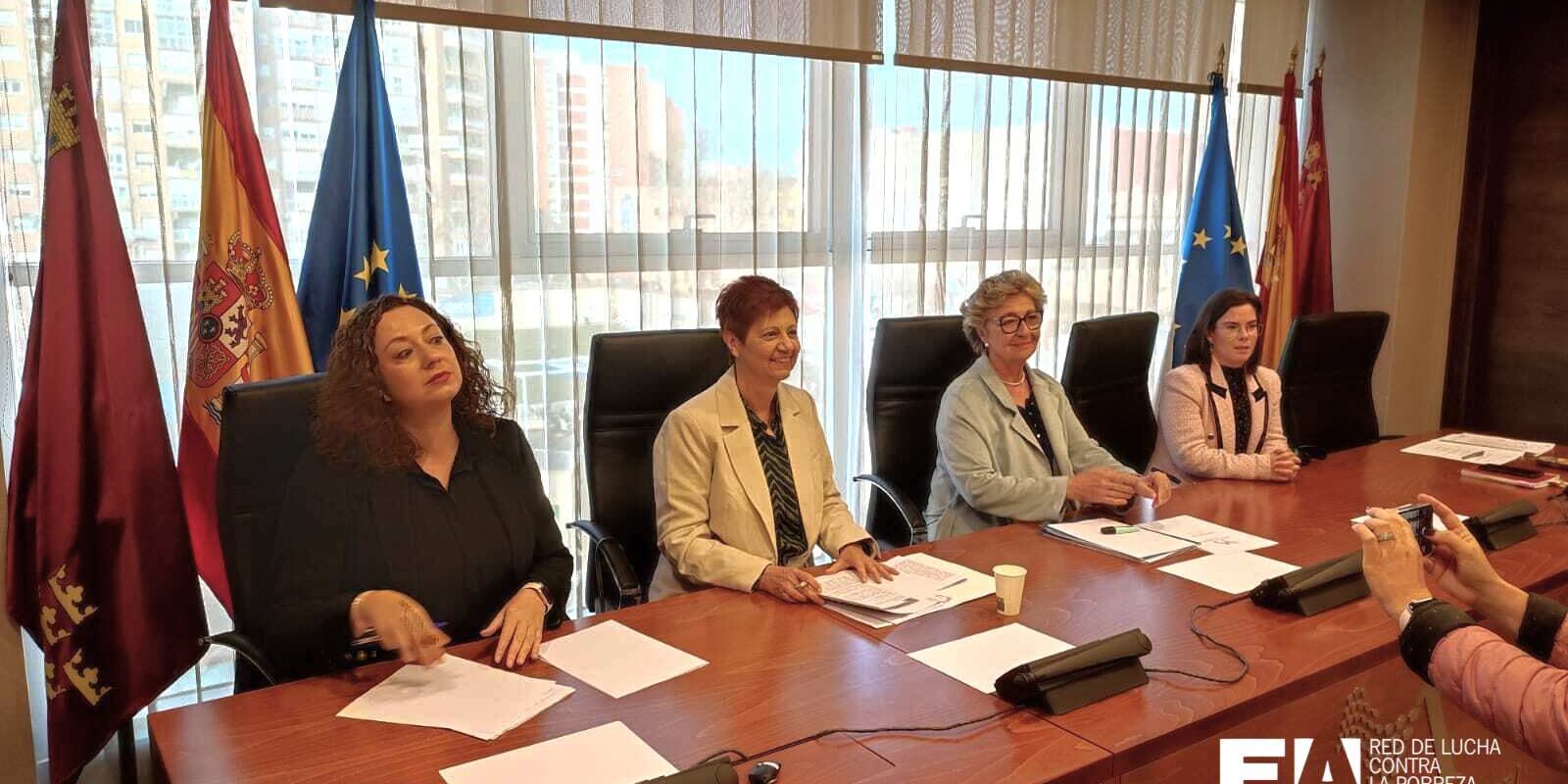 De izquierda a derecha: Asunción Juárez (coordinadora autonómica de Cruz Roja RM), Andrea Nieto (vicepresidenta de Incidencia Política de EAPN-RM), Maruja Pelegrín (presidenta de la Comisión), Rosa Cano (presidenta de EAPN-RM), María Teresa Sánchez (presidenta de Cruz Roja RM), Francisco Sánchez (secretario general de Cáritas Diócesis de Cartagena).